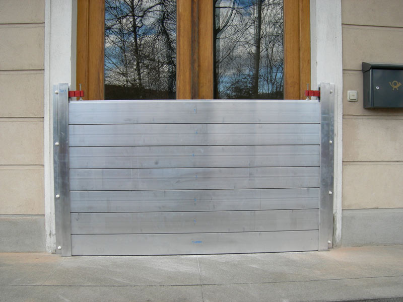 Mit den speziellen Dammbalken aus Aluminium können Fenster-, Tür- und Toröffnungen, die bei Hochwasser besonders gefährdet sind, rasch abgedichtet werden.