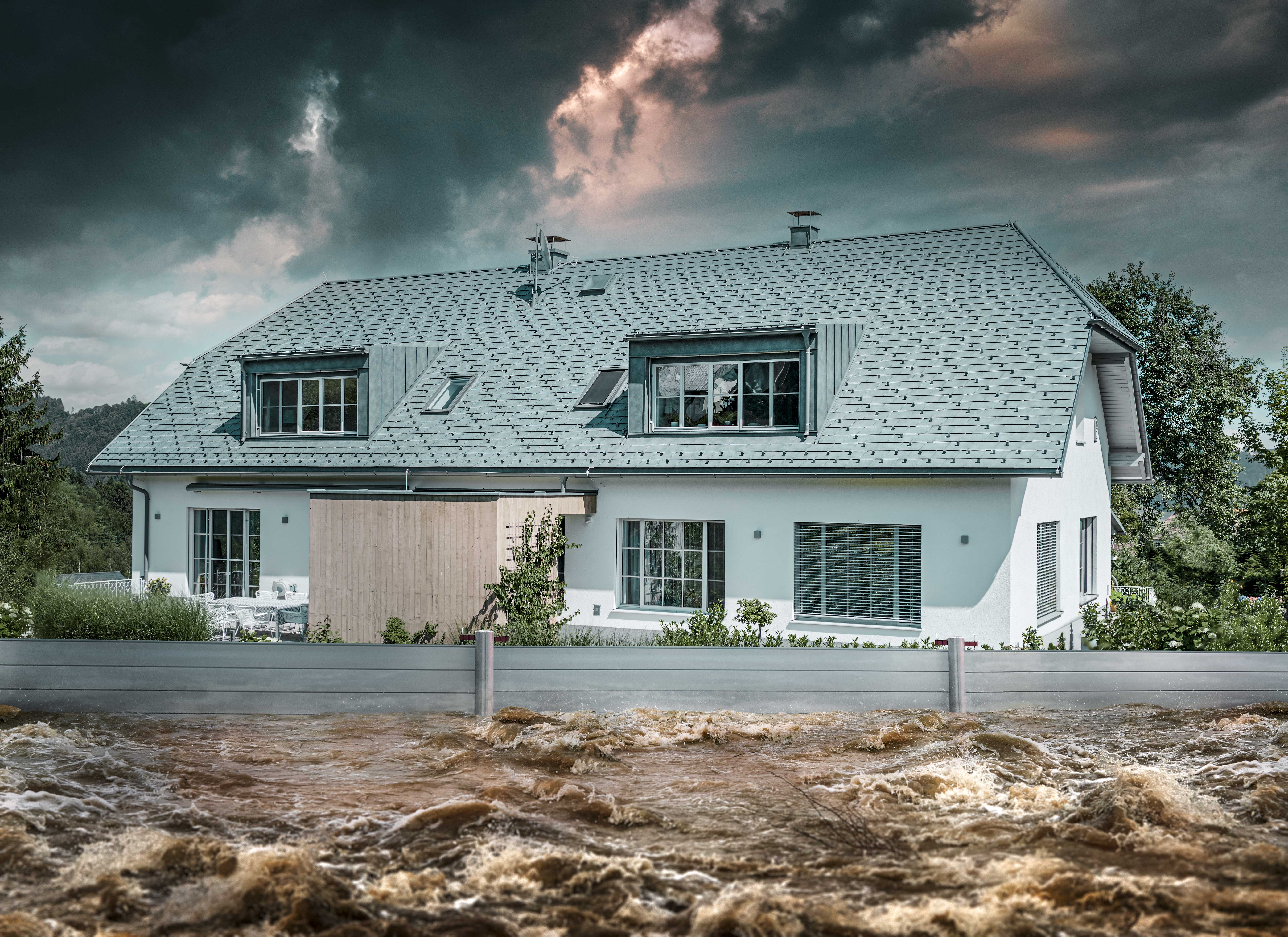 Das PREFA Hochwasserschutzsystem bietet individuelle Lösungen in zwei Bereichen, die sowohl im Privatbereich, als auch für Firmengebäude eingesetzt werden können: Objektschutz & Landschaftsschutz