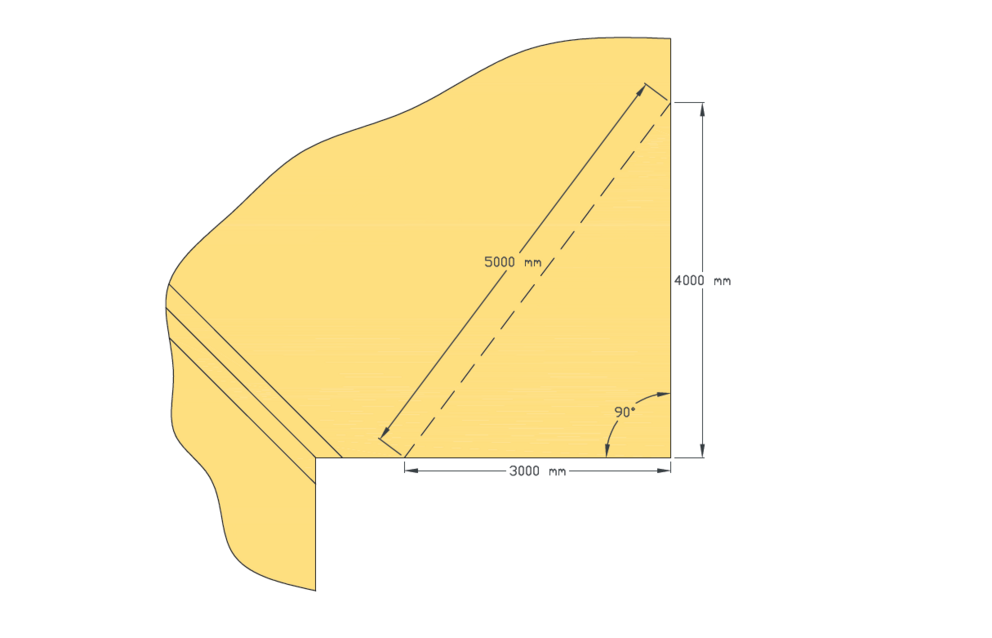 Diese Methode basiert auf dem rechtwinkligen Dreieck mit den Seitenverhältnissen 3 : 4 : 5 und funktioniert auch mit beliebigen Vielfachen oder Teilstücken dieser Längen – entscheidend ist, dass das Verhältnis 3 : 4 : 5 beibehalten wird.