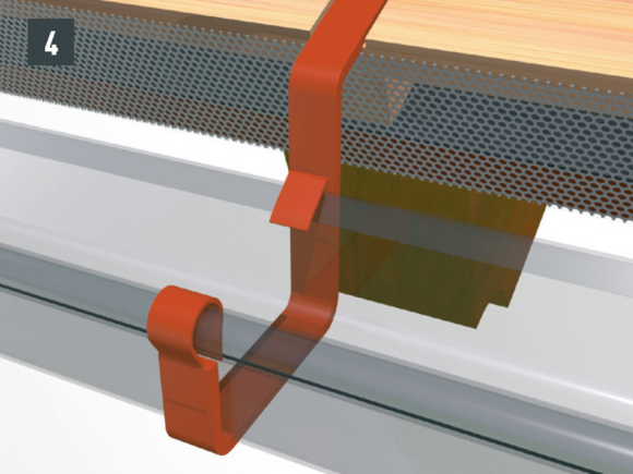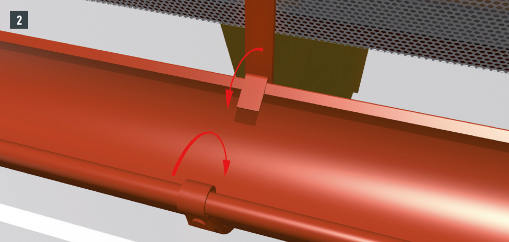 • Federn der Rinnenhaken schließen (Bild 2). Schließen Sie die Federn nicht zu streng, da ansonsten eine ungehinderte Ausdehnung der Rinnen nicht mehr möglich ist.