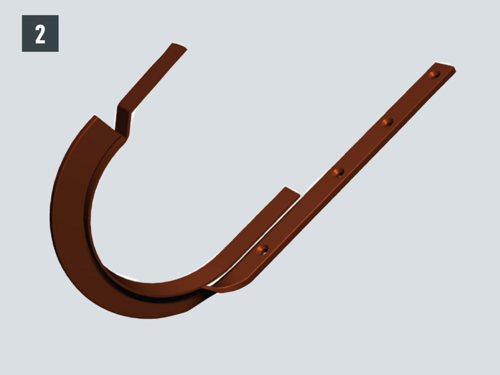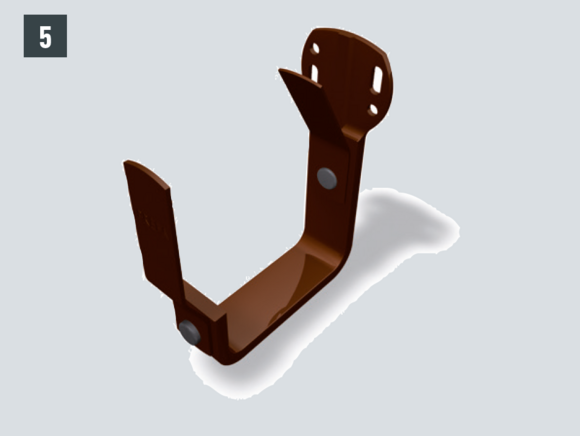Rinnenhaken hochkant (Bild 1), Rinnenhaken Schweiz (Bild 2), Stirnbretthaken (Bild 3), Kastenrinnenhaken (Bild 4), Stirnbretthaken für Kastenrinne (Bild 5)