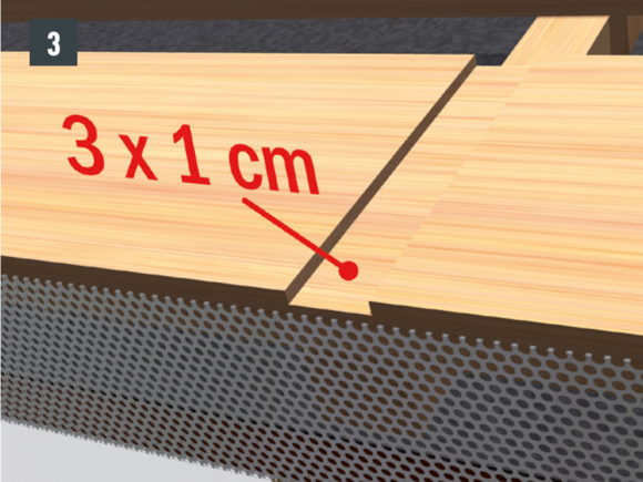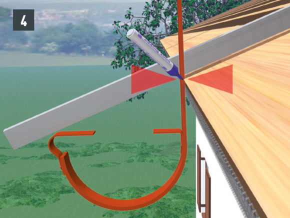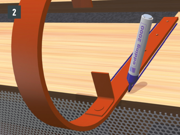 • Rinnenhaken an der Traufbohle über dem Sparren anzeichnen (Bild 2).