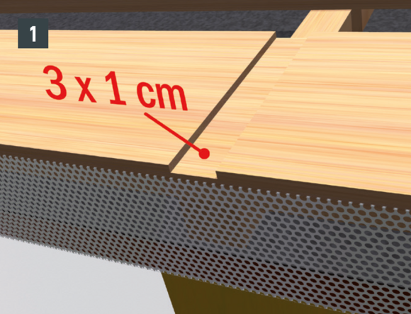 • Überbügel in der Traufbohle ausnehmen (Bild 1).
