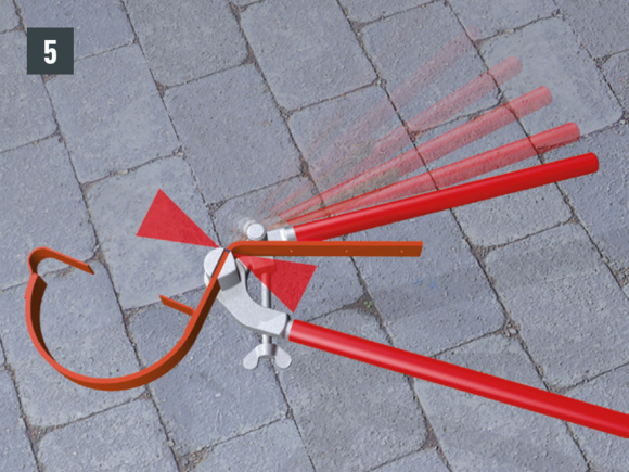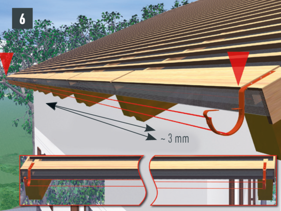 • Rinnenhaken in der richtigen Neigung und Höhe kanten (Bild 5).
