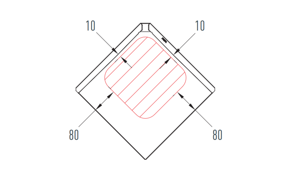 Sollten Sie etwas an die Fassade montieren (wie z. B. Lampen), achten Sie bei der Montage auf den zulässigen Montagebereich der Wandraute 29×29. Ist das Einhalten des Montagebereiches nicht möglich, ist eine Unterlagsplatte einzufalzen.