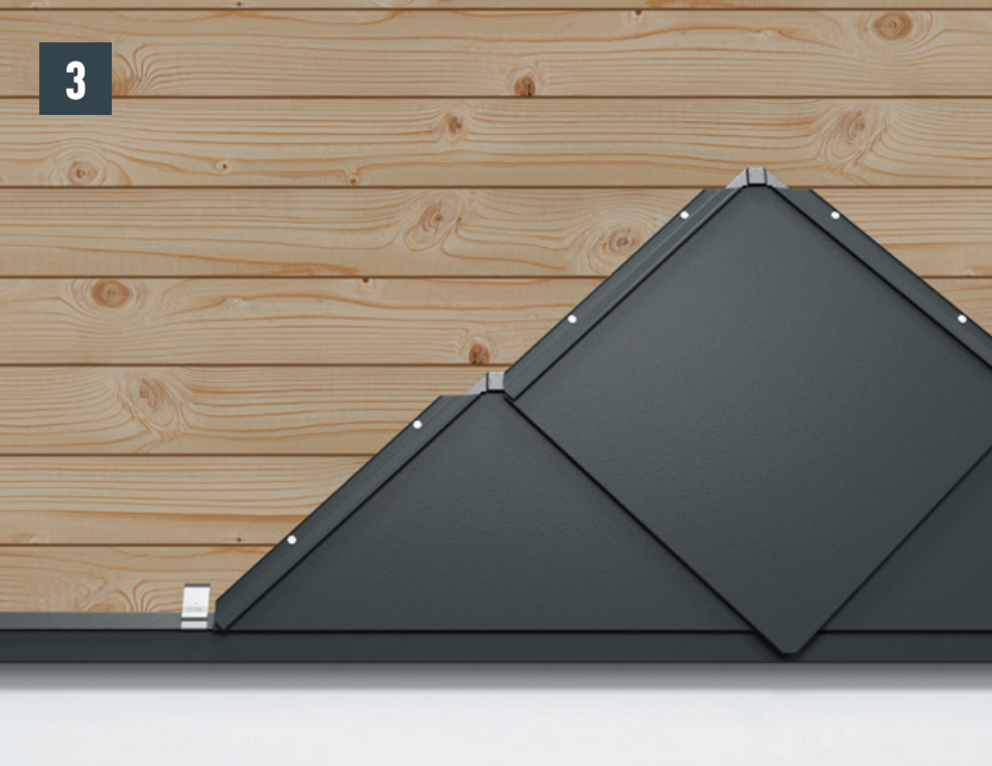 Die Befestigung jeder Wandraute 44 × 44 erfolgt direkt durch die vorgestanzten Befestigungslöcher mit vier mitgelieferten Rillennägeln 2,8/25.