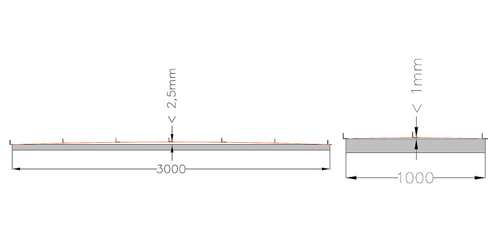 Die UK-Toleranz ist auf ein Stichmaß von 2,5 mm bei 3.000 mm Messpunktabstand bzw. 1 mm bei 1.000 mm zu begrenzen.