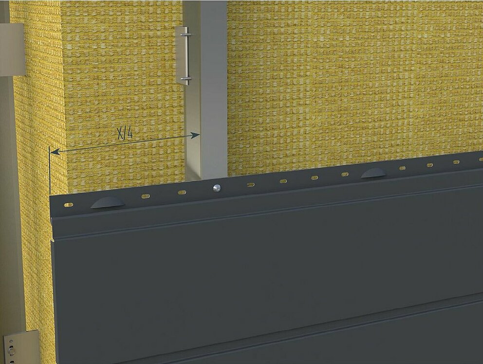 Beachten Sie die empfohlene maximale Auskragung von Siding, Siding.X und Siding Perforiert gemäß den statischen Anforderungen an ungestützten Gebäudeecken / im Randbereich von maximal einem Viertel des Unterkonstruktionsabstandes.