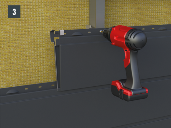 • Siding mit vormontierter Fuge entsprechend Siding-Verlegerichtlinien montieren und an der Unterkonstruktion befestigen (Bild 3).