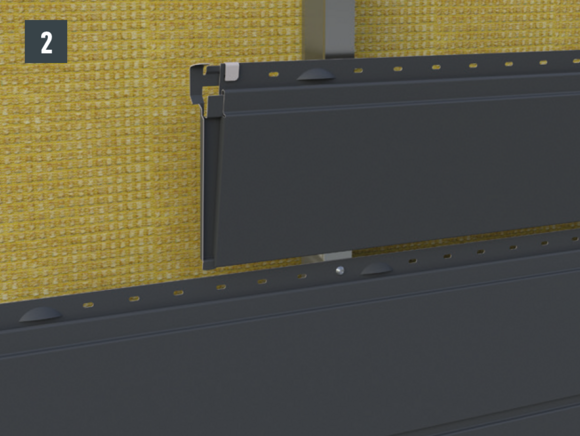 • PREFA Fuge mittels vorgebogener Lasche rückseitig am Siding fixieren (Bild 2).