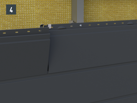 • Nächstes Siding platzieren und die seitliche Endabkantung in die PREFA Fuge stecken (Bild 4).
