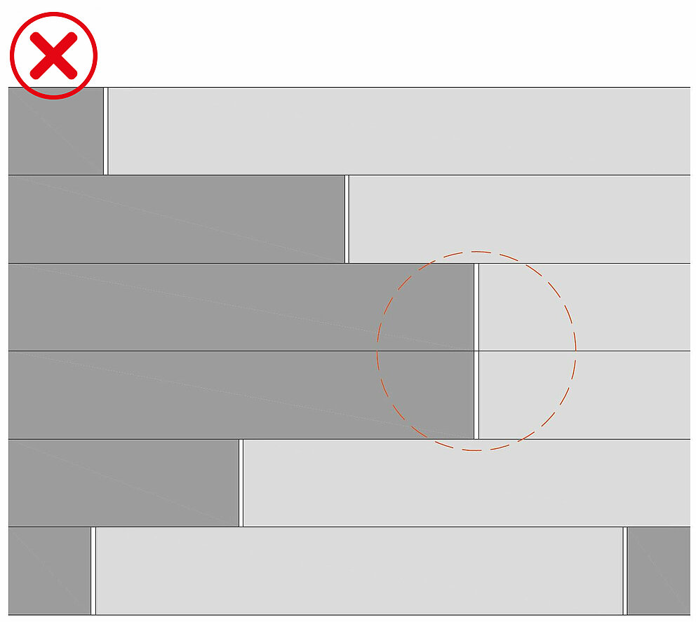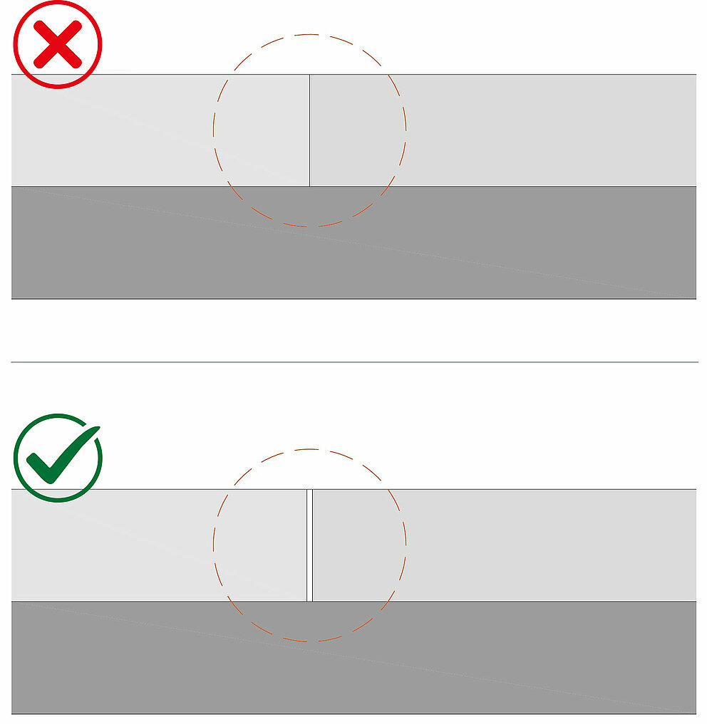 Die Montage von PREFA Fugen direkt übereinander ist nicht möglich: