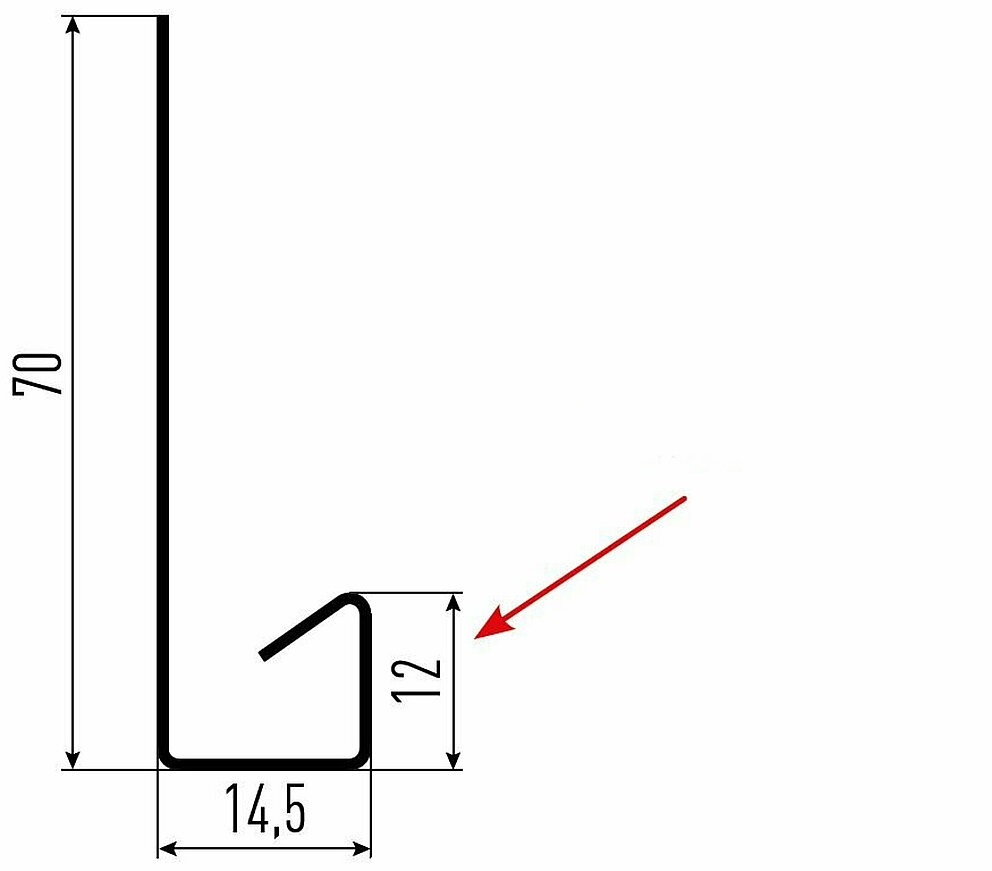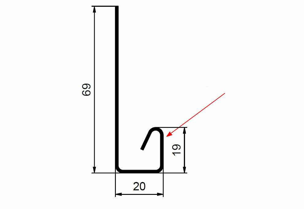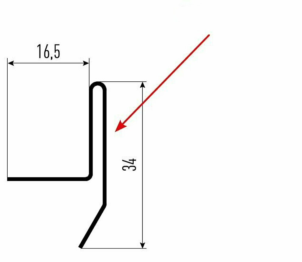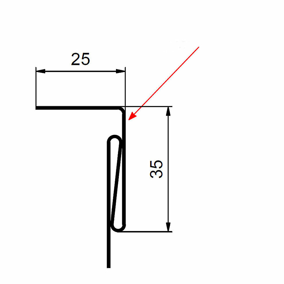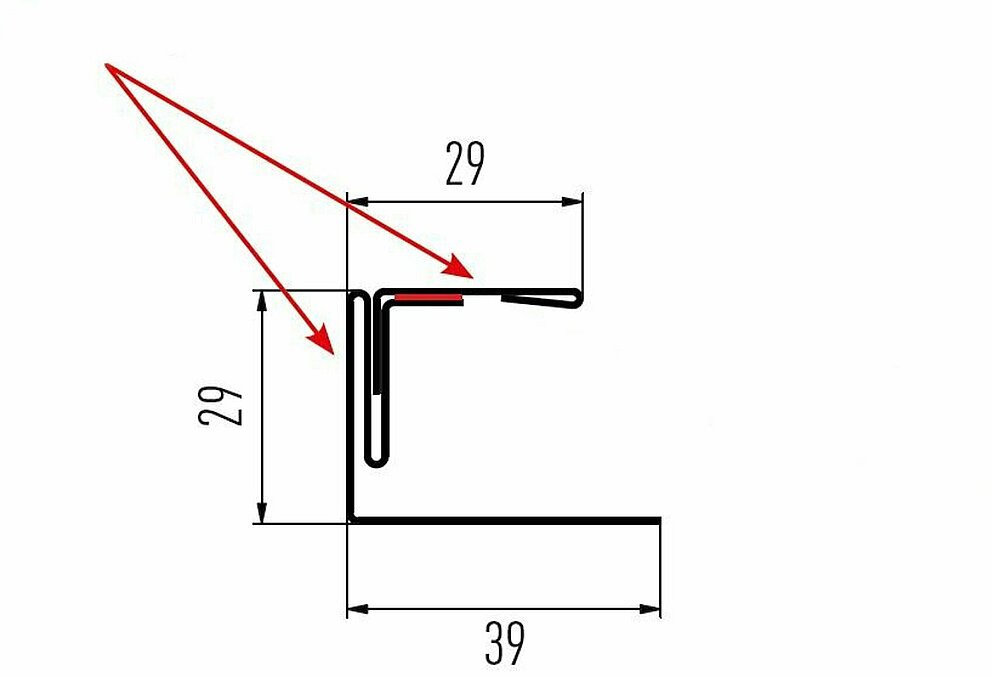 La freccia rossa contrassegna rispettivamente il lato a colori dei profili accessori.