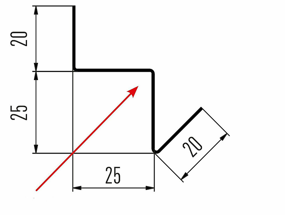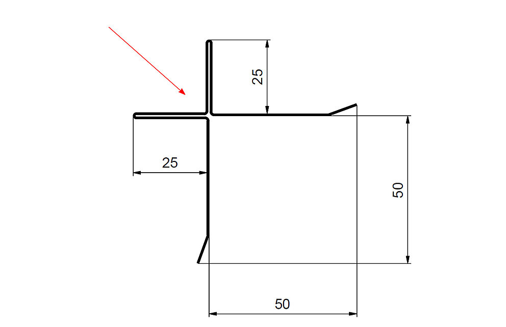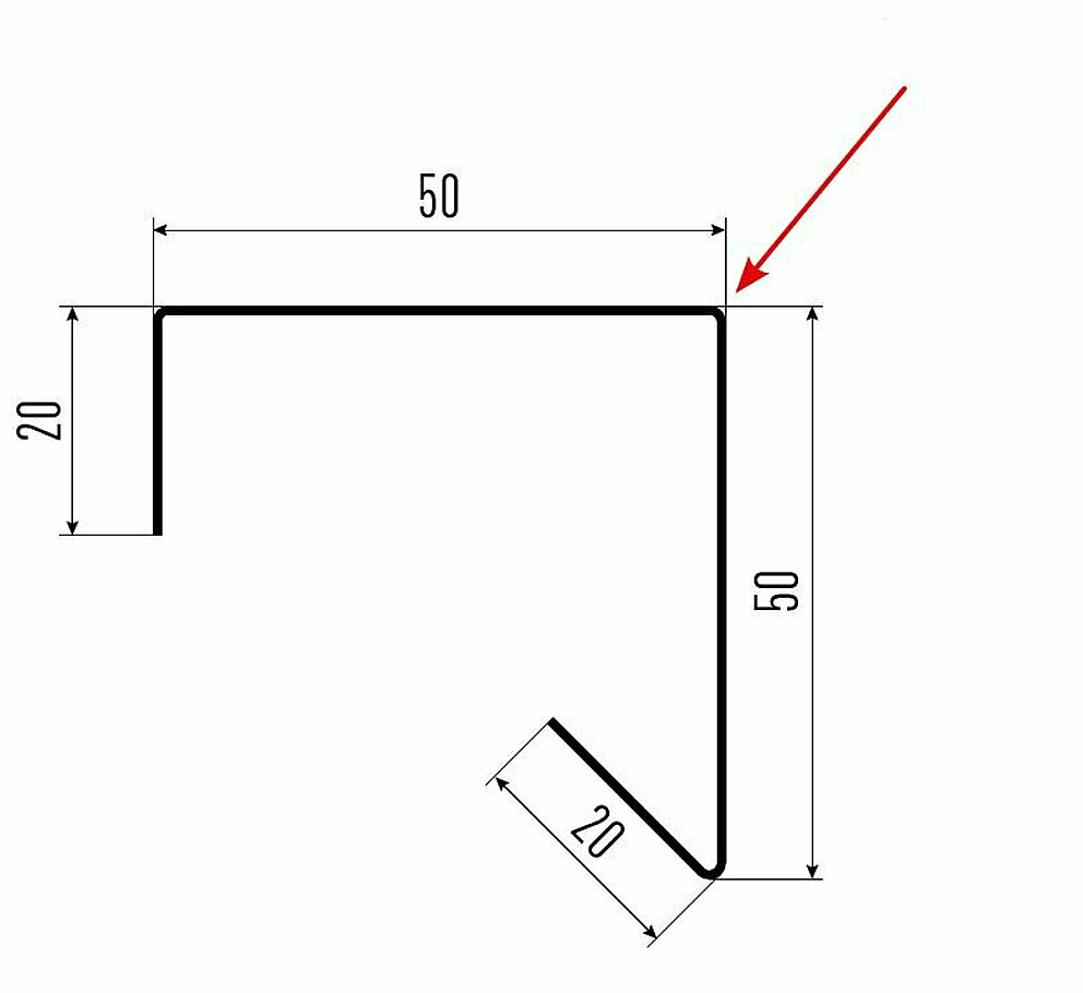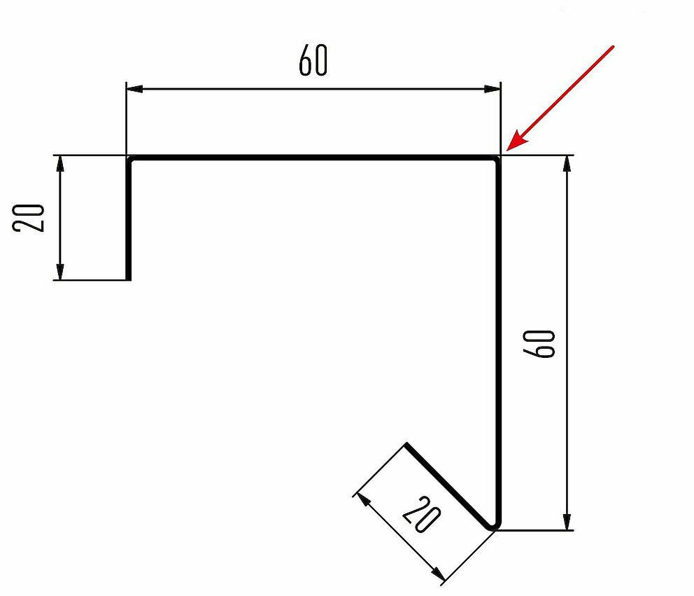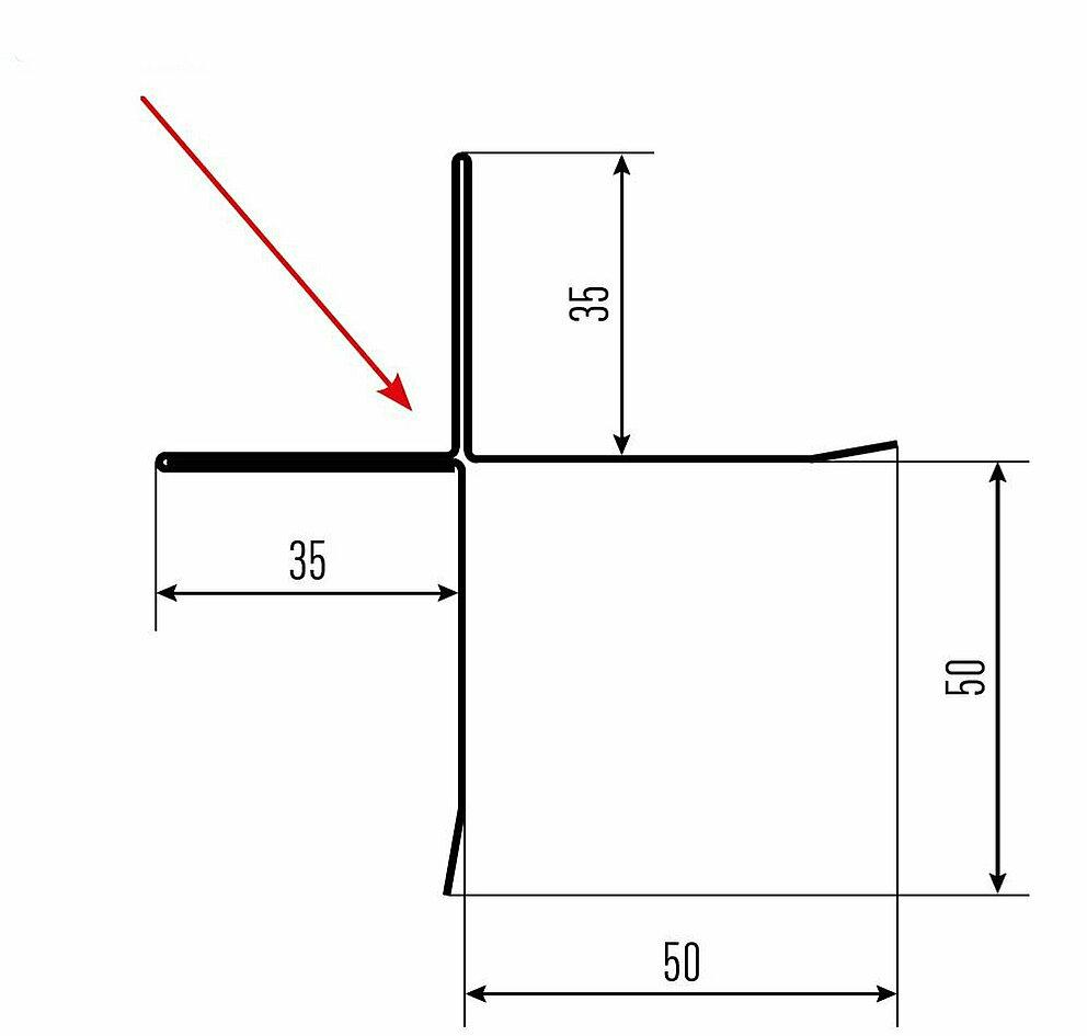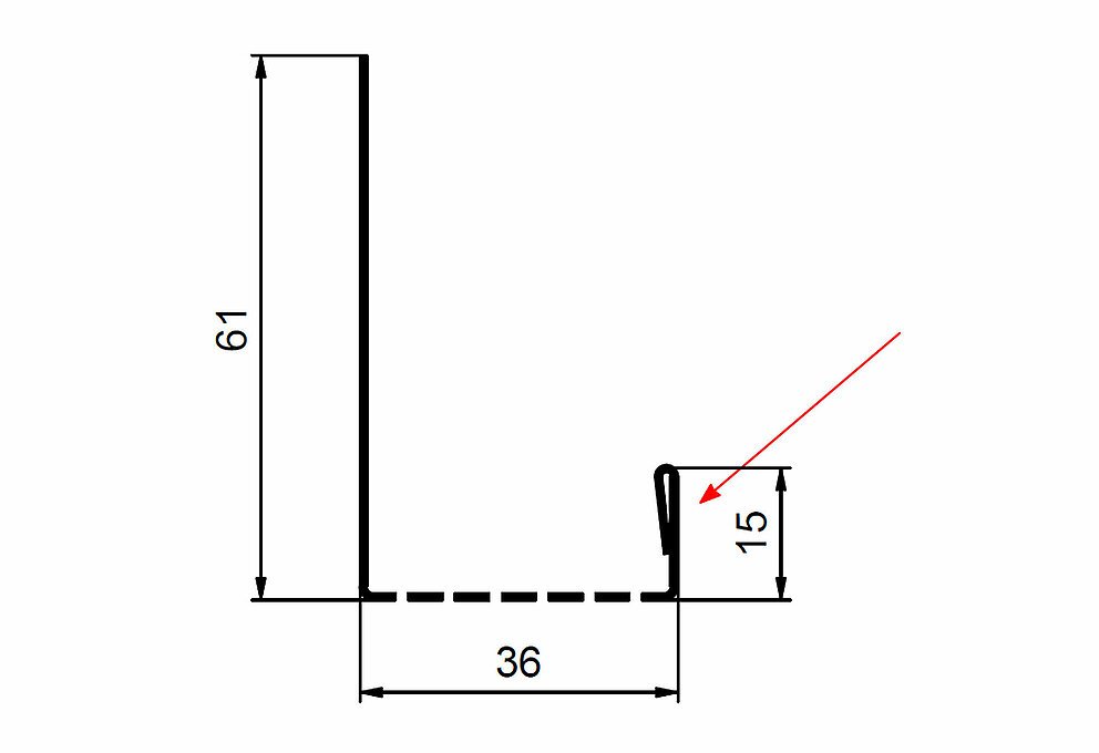 La freccia rossa contrassegna rispettivamente il lato a colori dei profili accessori.