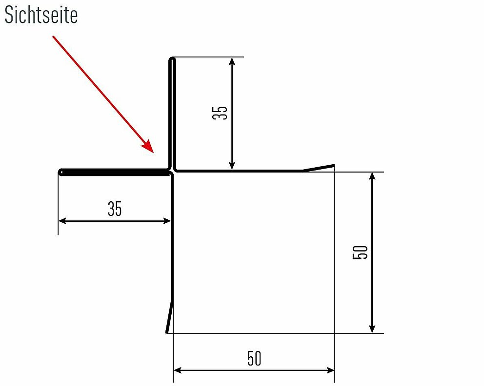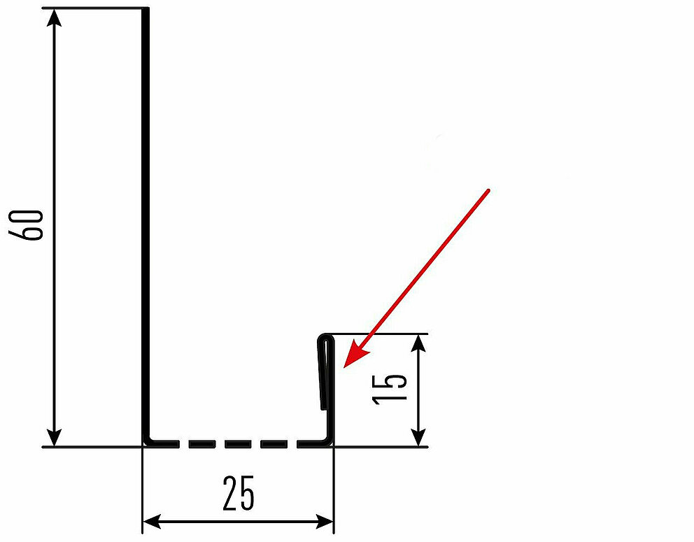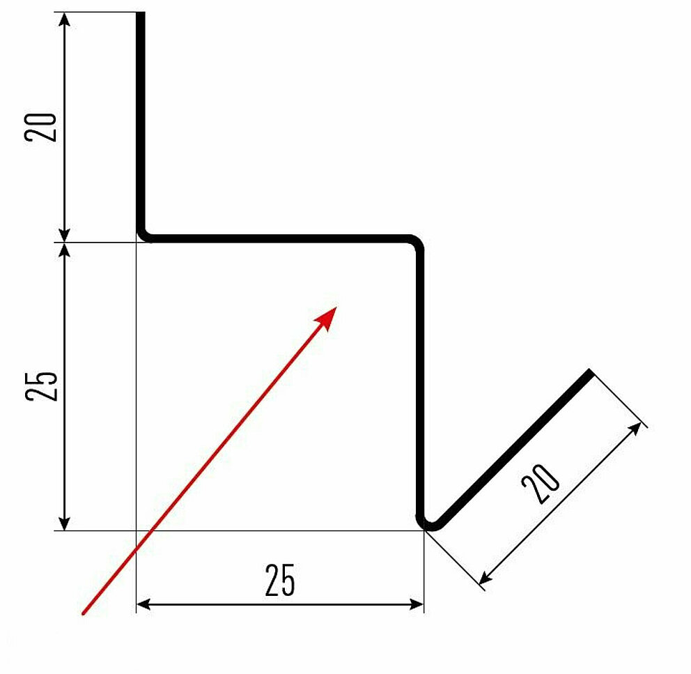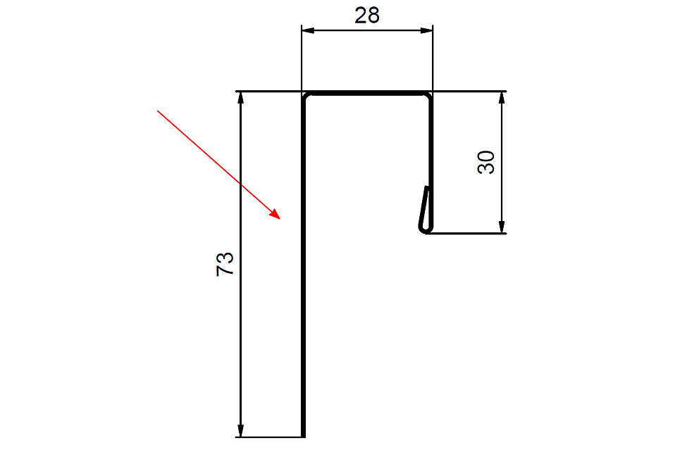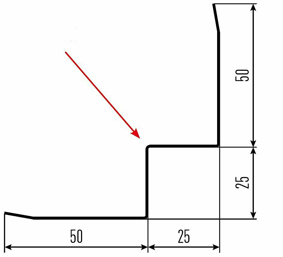 La freccia rossa contrassegna rispettivamente il lato a colori dei profili accessori.