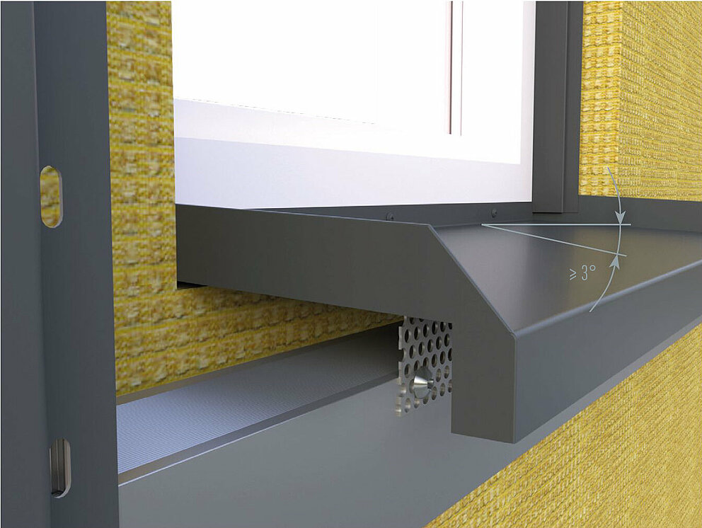 Il davanzale dev'essere realizzato con una pendenza minima di 3°. Osservare i requisiti in vigore a livello nazionale.