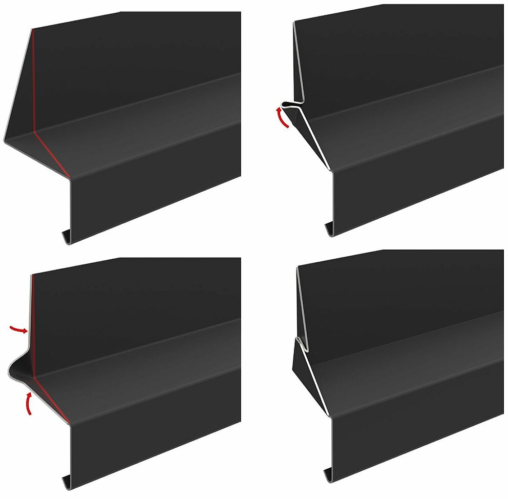 Sul lato superiore della lamiera di rivestimento viene creata una curva a 90° verso il centro della finestra.