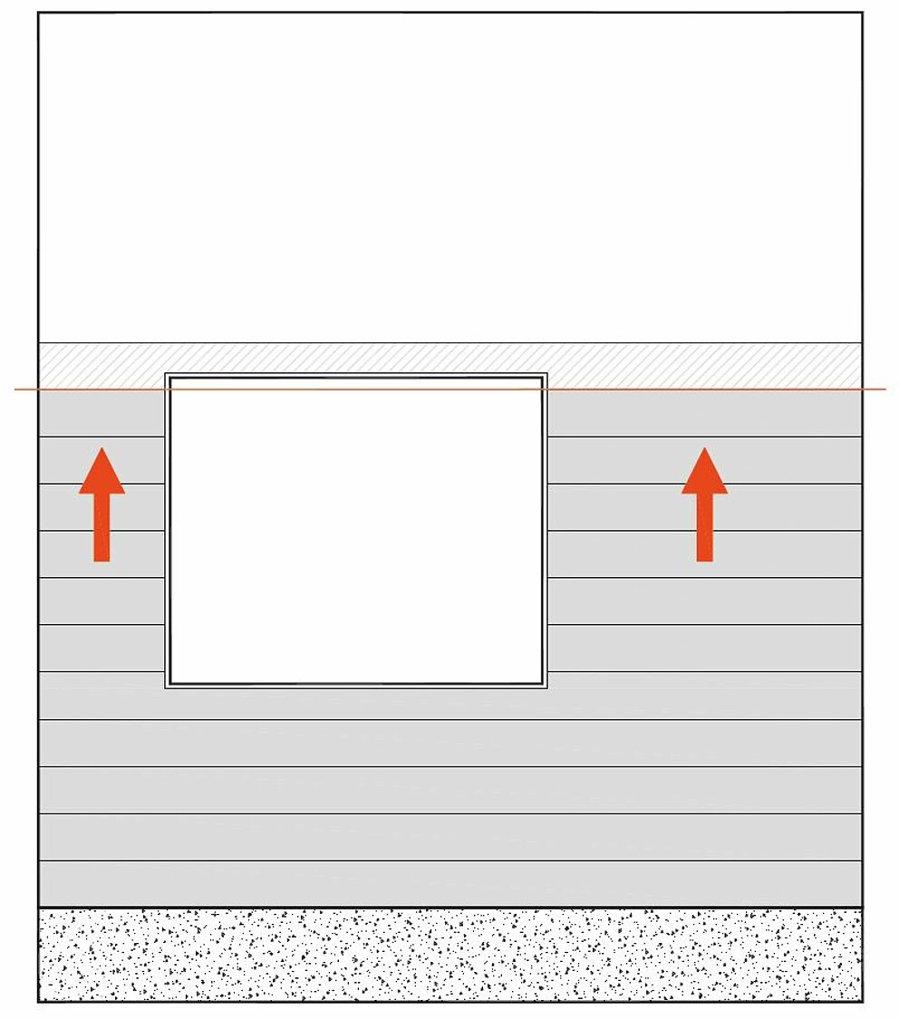 Una volta montato l'intradosso della finestra, iniziano i preparativi per l'architrave. I bordi su entrambi i lati del gocciolatoio vengono strutturati come pieghe.