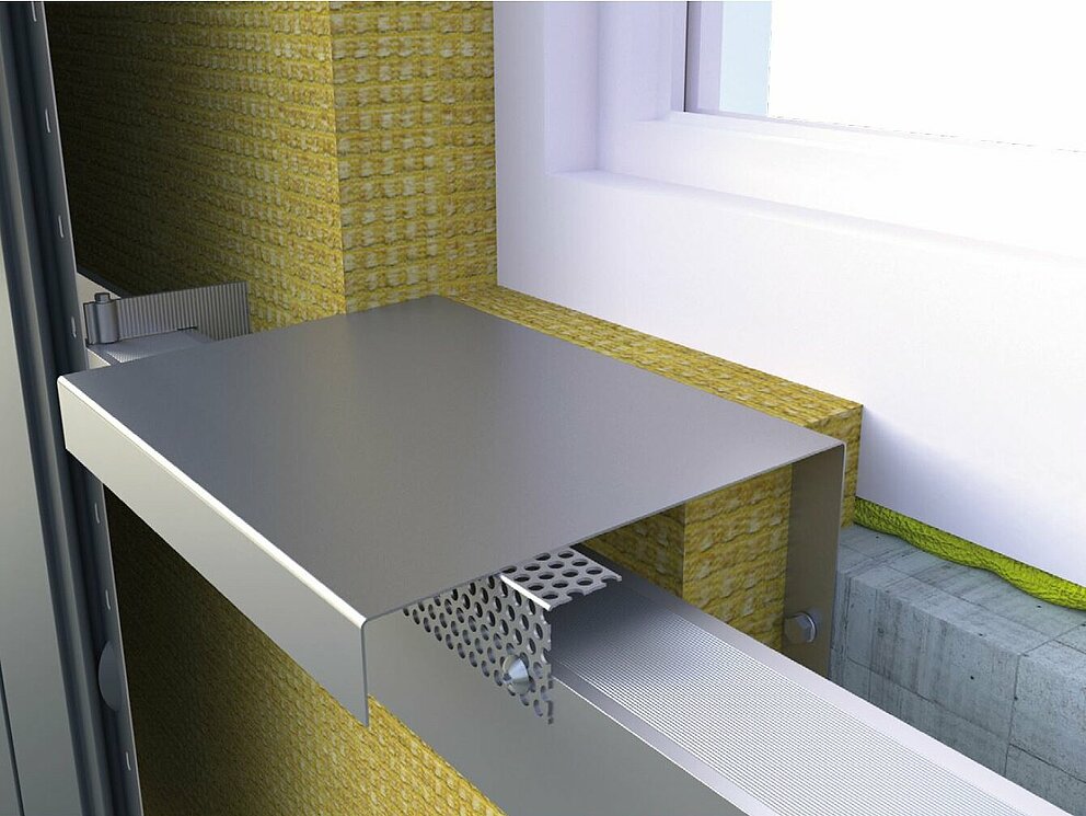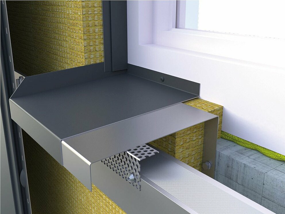 Ora il davanzale può essere attaccato al lamierino di tenuta e montato sull'intelaiatura della finestra, tenendo conto delle esigenze costruttive del cantiere. Quindi montare i profili a inserto per la lamiera di rivestimento.