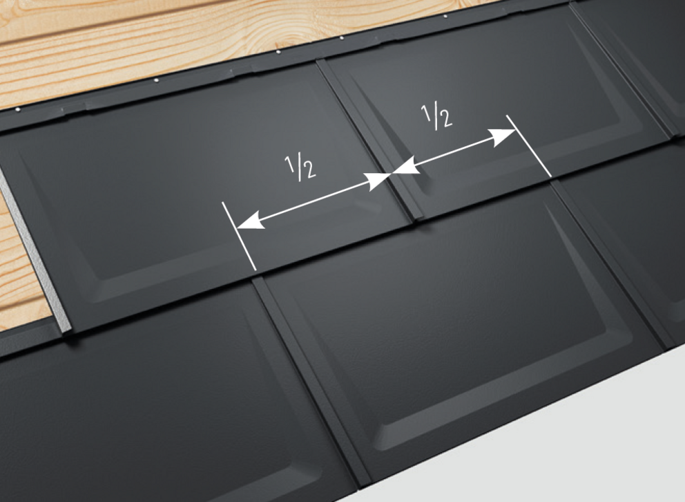 Le tegole R.16 vengono sempre messe collegate, ovvero a giunto sfalsato Per facilitare la posa con uno sfalsamento di mezzo giunto, è presente un segno sull'aggraffatura superiore della tegola R.16.