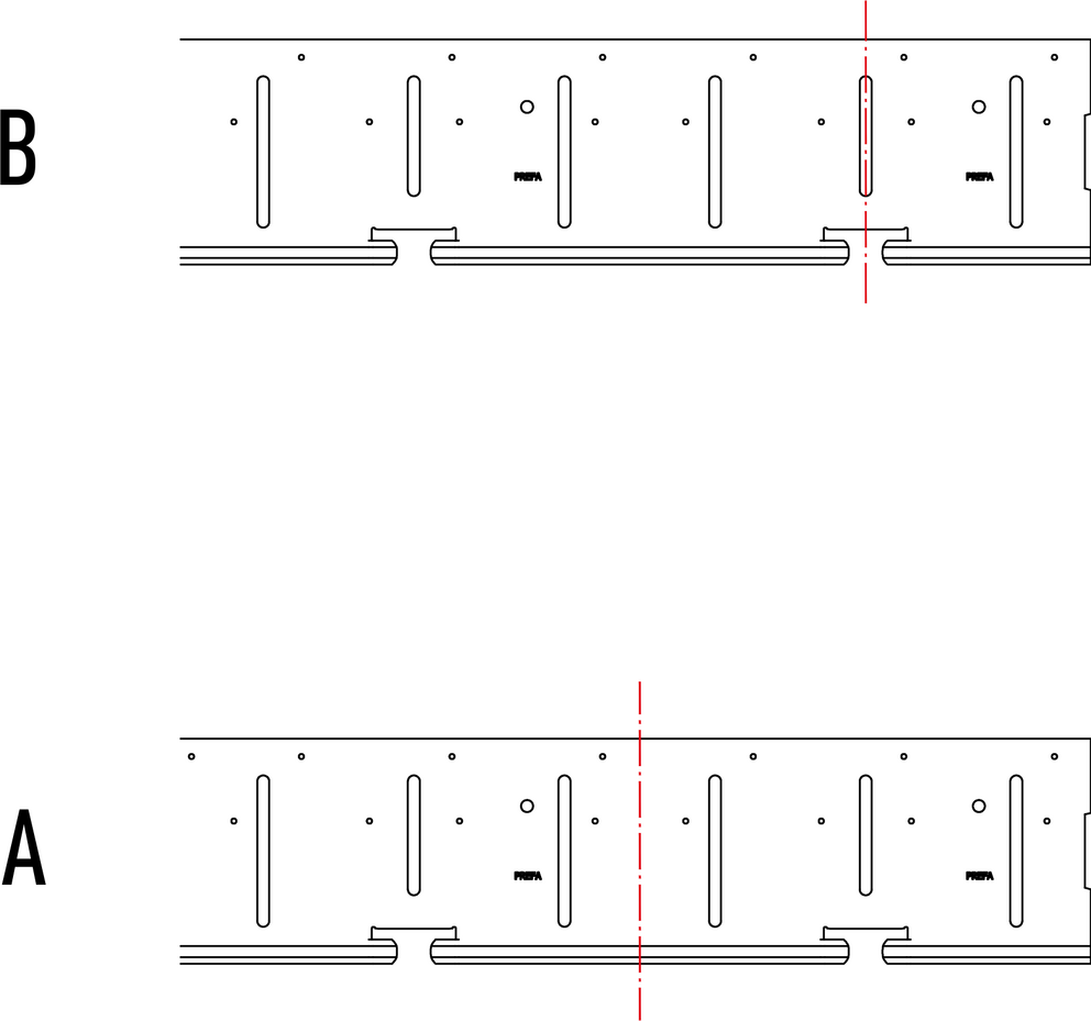 In pratica, viene sempre tracciata un marcatura colorata verticale dopo ogni 5 tegole (1.505 mm) o dopo ogni 10 tegole (3.010 mm).