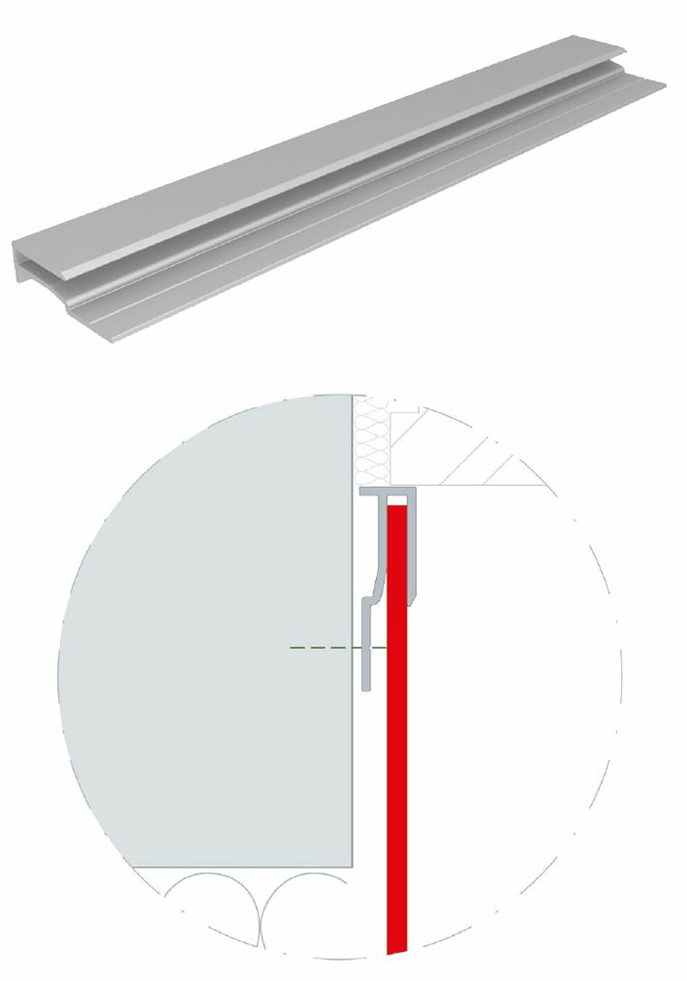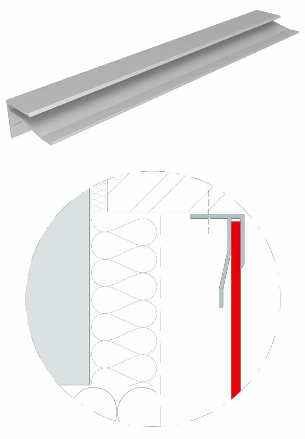 (I due profili di conversa estrusi per pannelli compositi in alluminio con una lunghezza di 6.200 mm ciascuno possono essere verniciati a polvere in fabbrica).
