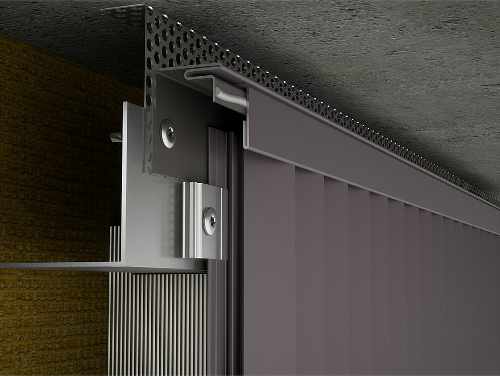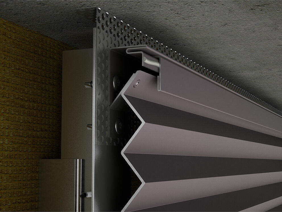 Per ventilare adeguatamente la facciata, è necessario prevedere un'apertura per l'aria di scarico in corrispondenza del raccordo alla testa. Montare un nastro forato con una piega a 90° in corrispondenza dell'apertura per l'aria di scarico (per es. sottotetto) per ottenere una maggiore rigidità.