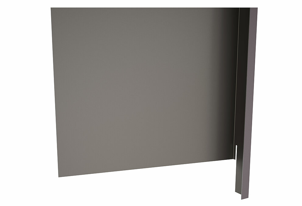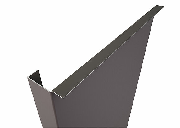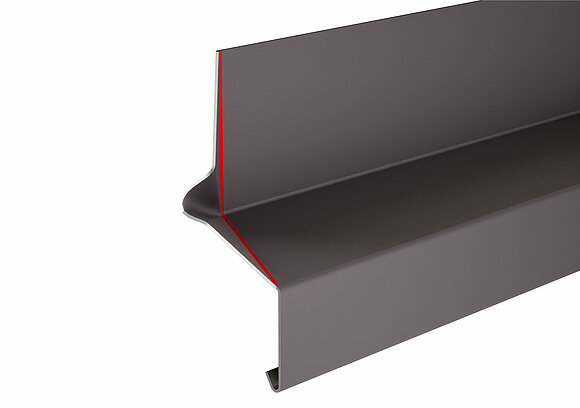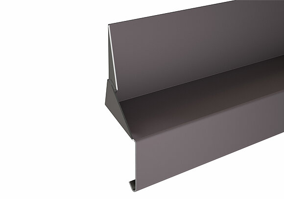 Bordare poi una lamiera di rivestimento superiore in base alle esigenze costruttive del cantiere e spingerla nel profilo a inserto. Il gocciolatoio viene attaccato nella lamiera di rivestimento superiore.
