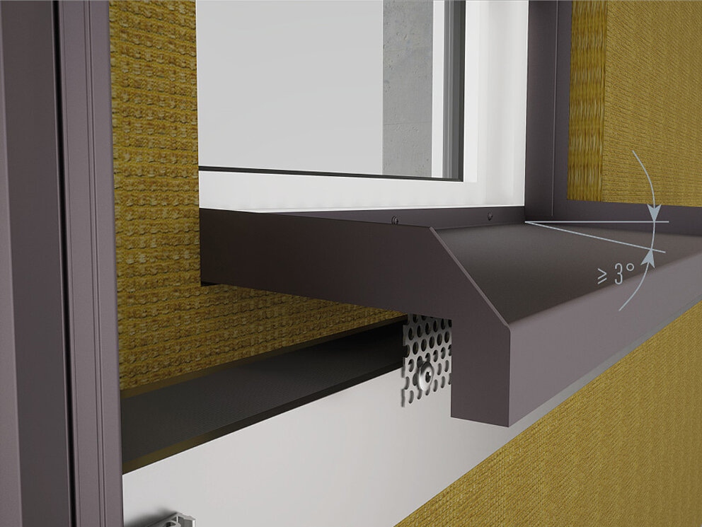 Quando si monta il davanzale sull'intelaiatura della finestra, assicurarsi che la finitura sia a prova di pioggia battente. Osservare anche le specifiche del produttore della finestra.