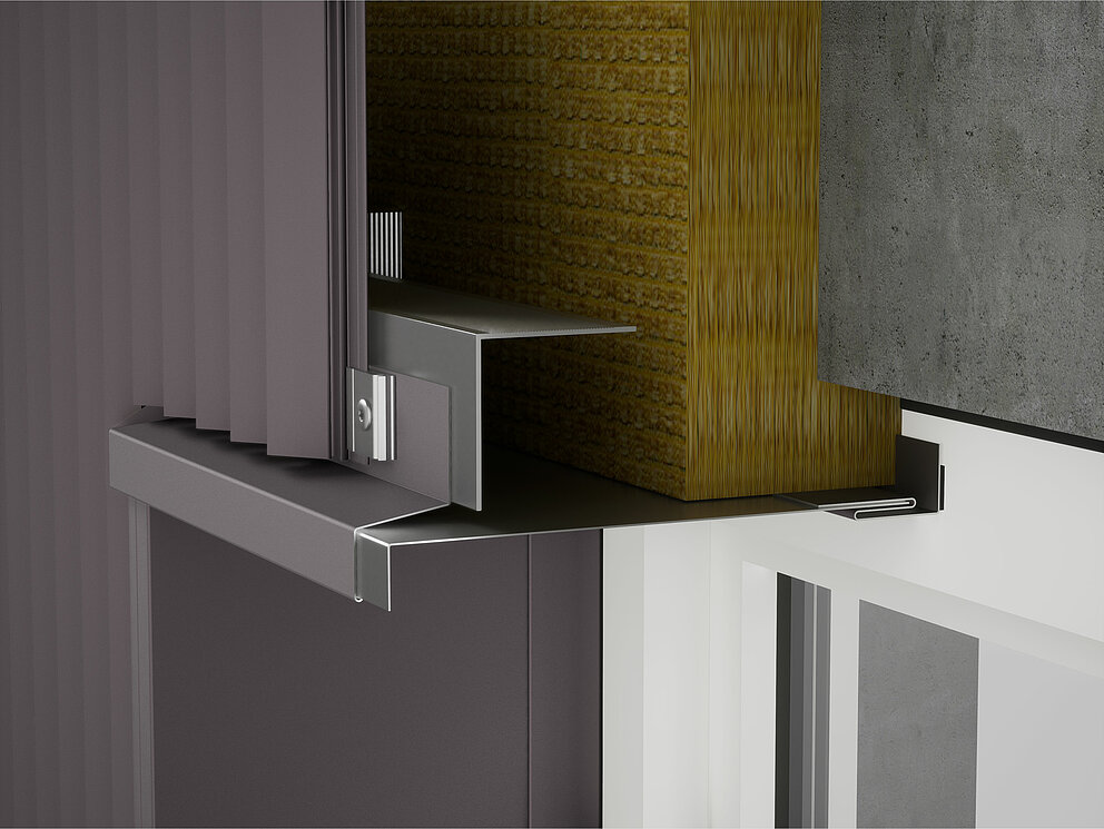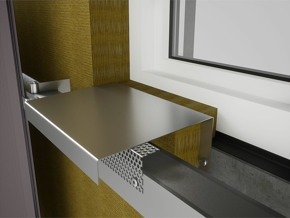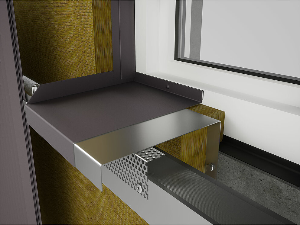 Ora il davanzale può essere attaccato al lamierino di tenuta e montato sull'intelaiatura della finestra, tenendo conto delle esigenze costruttive del cantiere. Quindi montare i profili a inserto per la lamiera di rivestimento.