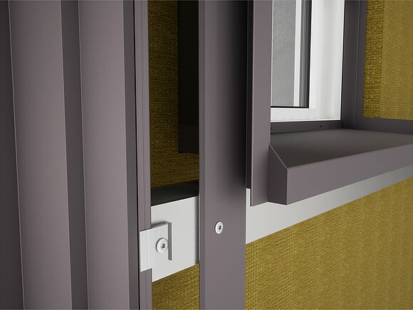 Quindi avvitare l'angolare di bloccaggio per la lamiera di rivestimento alla sottostruttura a sinistra e a destra della finestra. Contemporaneamente fissare anche i profili a inserto per la lamiera di rivestimento e quello per l'architrave all'intelaiatura della finestra o al muro.