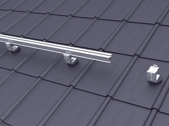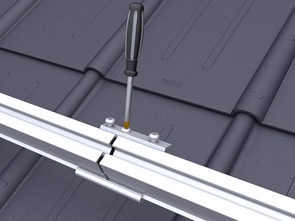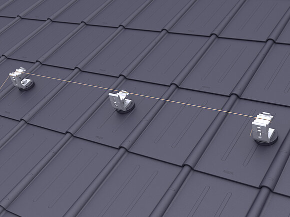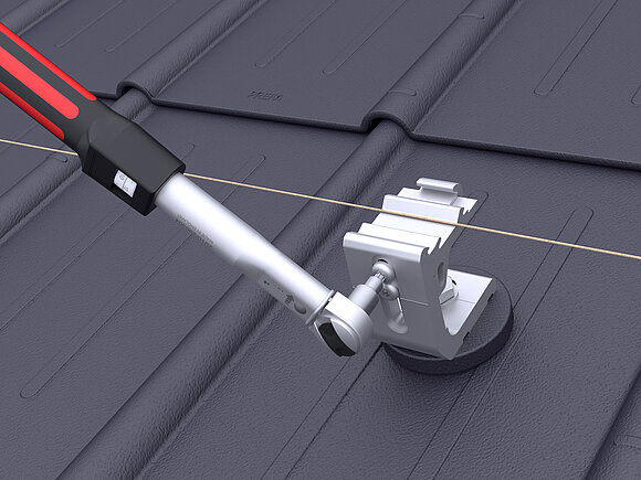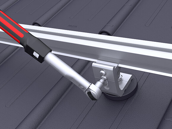 Regolare i supporti della guida dei PREVARIO 3.S esterni a un'altezza media. Serrare il cavo di montaggio e allineare dachparallel il resto del supporto della rotaia e in altezza. Serrare la vite superiore dei supporti già allineati con una coppia di 20 Nm.