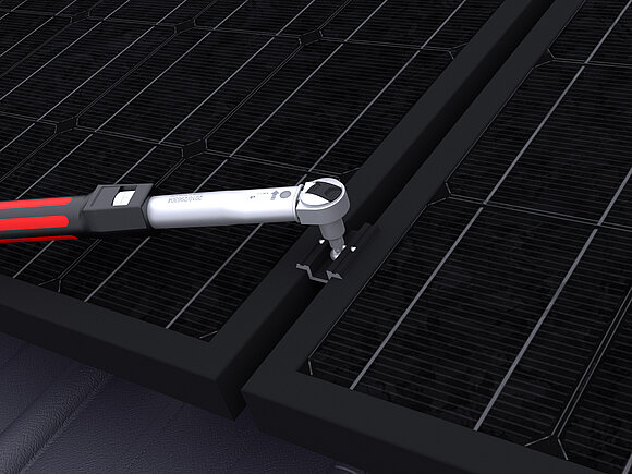 Successivamente, i moduli vengono posizionati e i morsetti centrali o terminali vengono serrati con una coppia di 15 Nm.