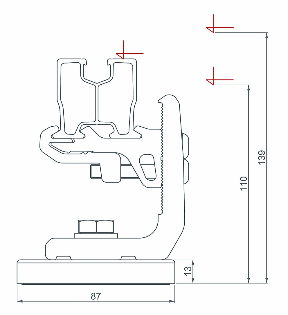 Non fissare il piedino sulla linea di aggancio o sull’onda del rivestimento di copertura PREFA. Se la trave non corrisponde all'area di montaggio, utilizzare una piastra di supporto.