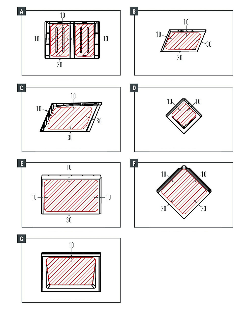Come mostrato nella figura precedente, l'area di montaggio del PREVARIO Sunny è limitata per i prodotti PREFA di piccolo formato. Il montaggio del Sunny avviene esclusivamente sulle superfici rette. Siccome la funzione di Sunny è puramente di chiusura stagna, la calotta di copertura può anche essere posizionata più vicino alle linee di sovrapposizione.