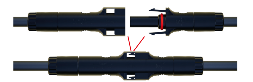 Le spine utilizzate sulla tegola fotovoltaica PREFA e i relativi cavi di collegamento sono protetti contro l’inversione di polarità. Il bloccaggio dei connettori impedisce che i contatti si allentino da soli.