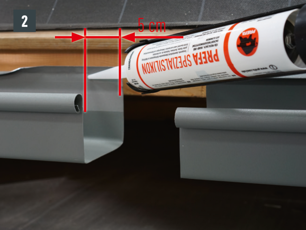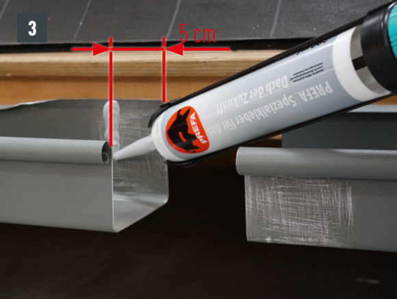 Raccordi dei canali quadri con una cartuccia di colla speciale PREFA