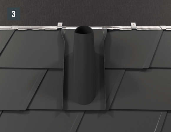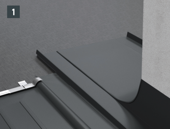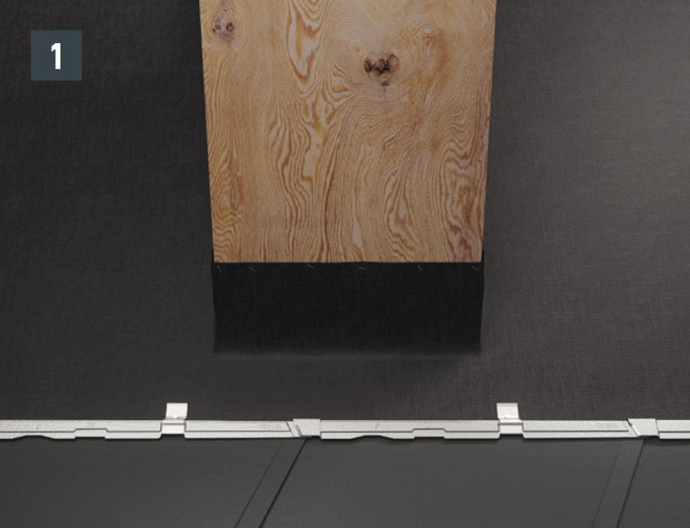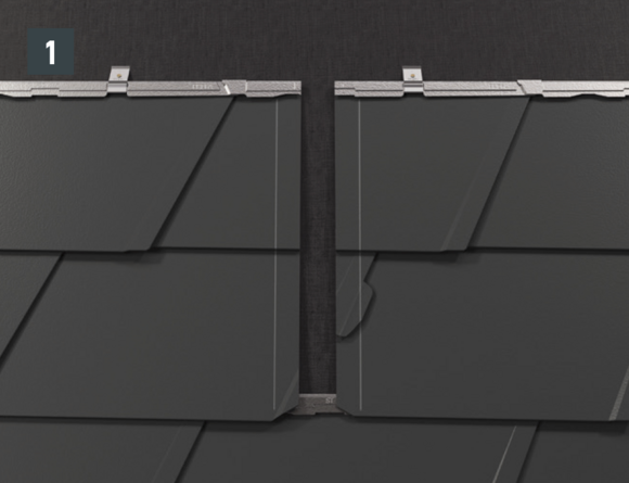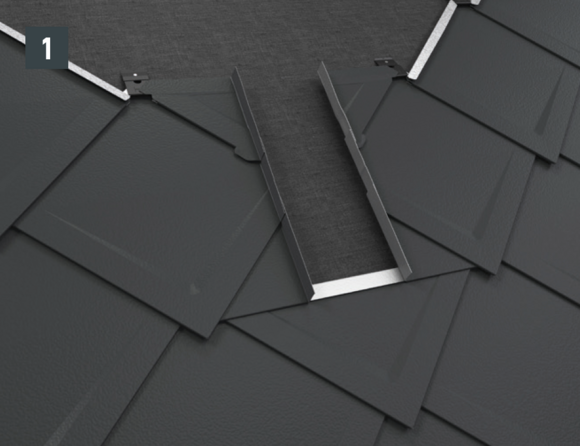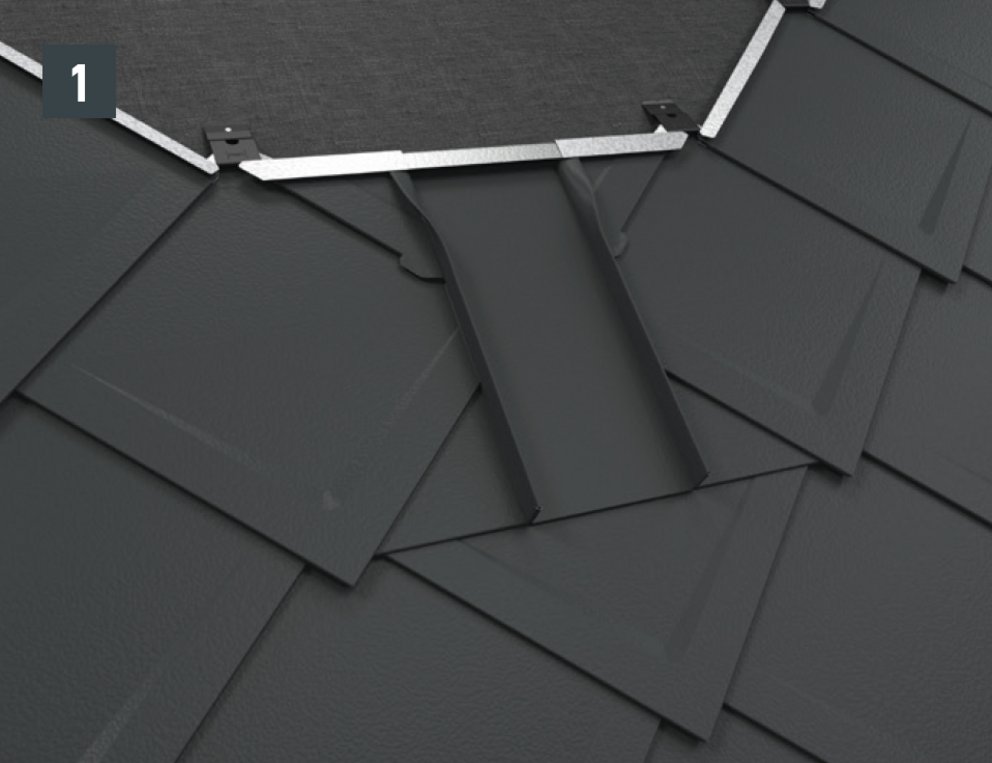 Per l'installazione della sottopiastra, nel caso delle scaglie 29 × 29 o 44 × 44, è necessario posare scaglie di partenza e scaglie finali. Queste permettono un'aggraffatura di aggancio orizzontale per l'inserimento a prova di pioggia della conversa (fig. 1).