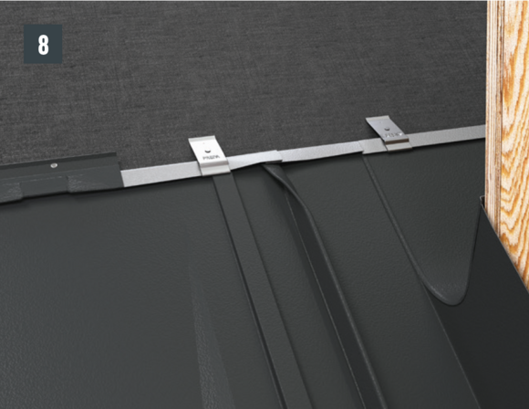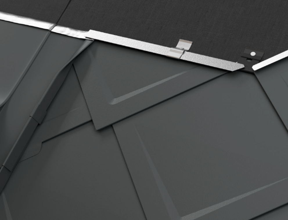 ATTENZIONE: Con una pendenza del tetto inferiore a 20°, le aggraffature trasversali e i giunti di sovrapposizione delle parti della conversa devono essere ulteriormente sigillati.