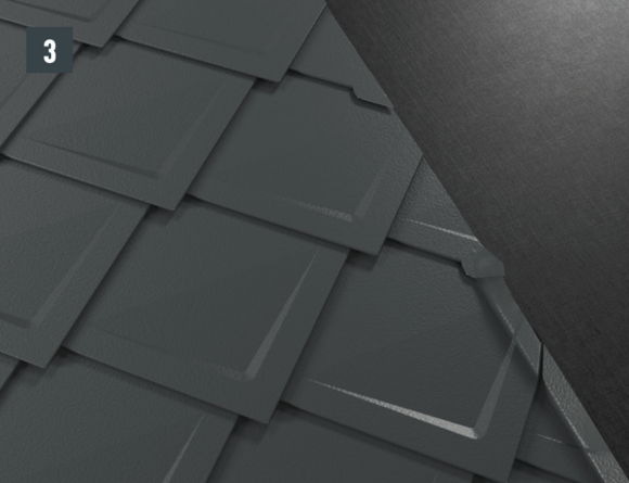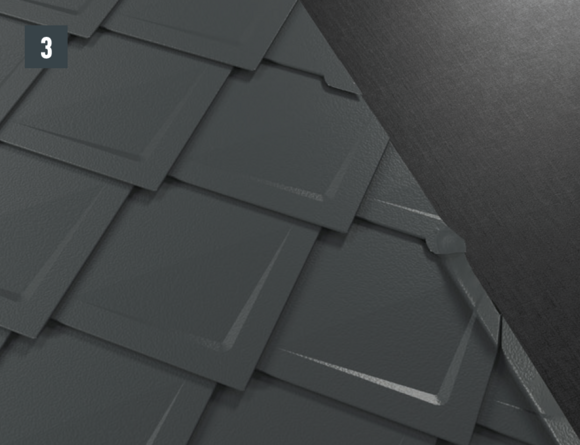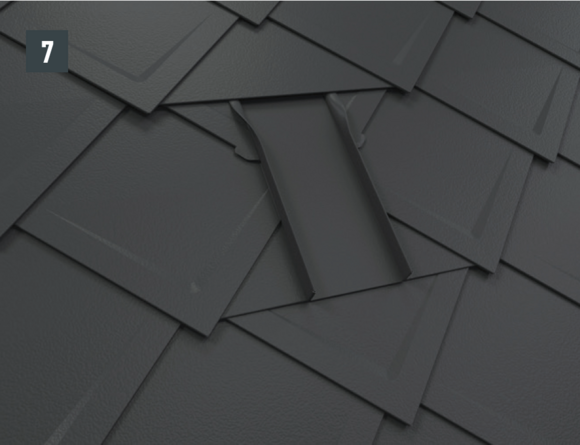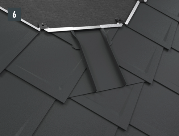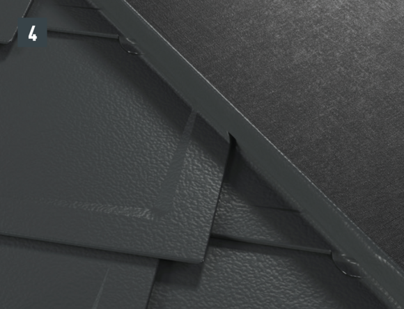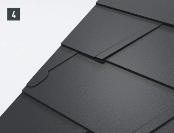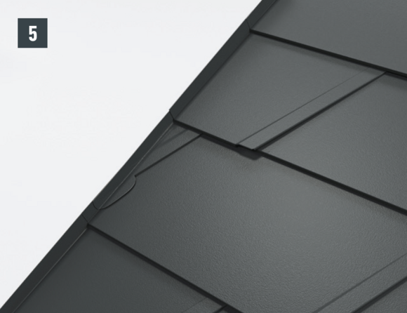 Per ottenere un'aggraffatura di aggancio orizzontale per l'inserimento a prova di pioggia della conversa dietro al passo uomo, si devono posare scaglie finali per scaglie 29 × 29 o 44 × 44.