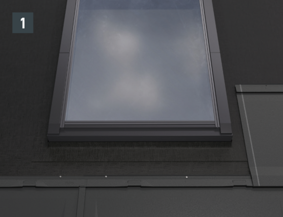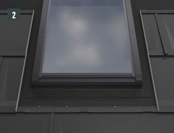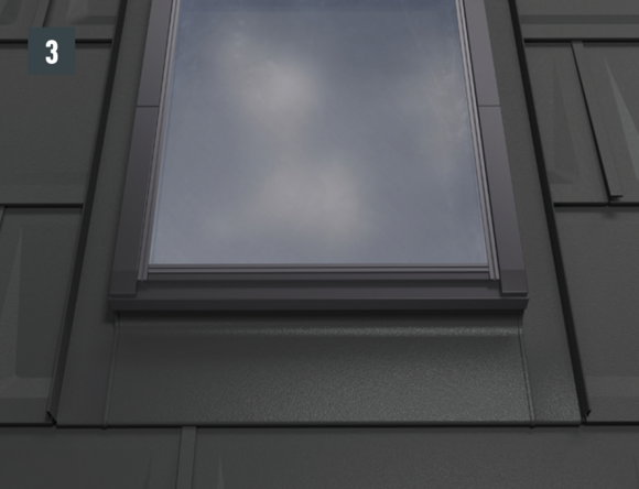 Fare arrivare la copertura PREFA tanto in alto da riuscire a coprire l'ultima fila di elementi di copertura PREFA sotto il lucernario.