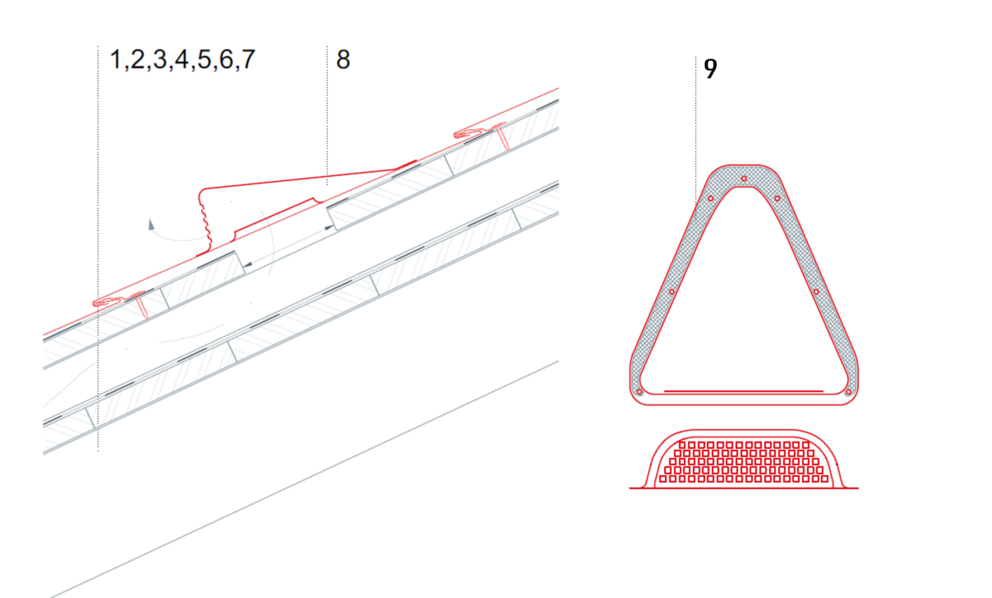 Particolarità della tegola R.16 e del pannello per tetto FX.12
