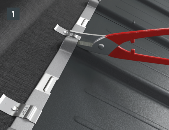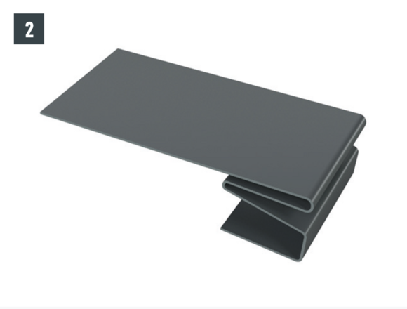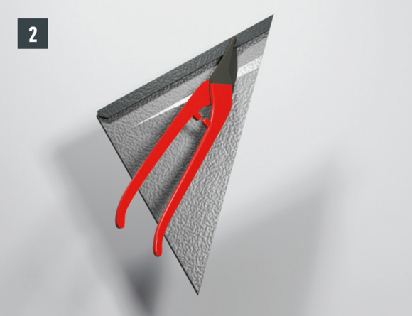 Nella zona del bordo ripiegato, sganciare l’aggraffatura superiore, in modo che resti un'aggraffatura per la staffa, e piegare la tegola R.16 o il pannello per tetto FX.12 di 30 mm ad angolo retto rispetto alla superficie del tetto (fig. 1 + 2).