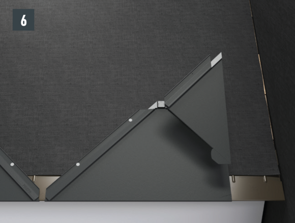 Dopo aver montato le tegole fino alla posizione desiderata della sottopiastra, allineare la bordatura superiore della tegola in modo che sia possibile agganciare la sottopiastra.
