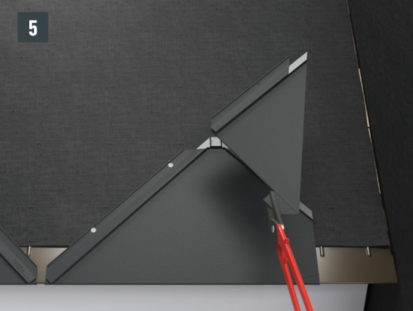 Per ogni ripiegatura delle scandole e delle scandole DS.19 sul lato sinistro, è necessario fare delle tacche sulle aggraffature che corrono diagonalmente verso il basso per evitare un effetto di capillarità.
