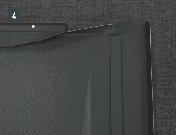 Nella zona superiore, l'elemento laterale dovrebbe sporgere sopra la bordatura superiore del pannello.