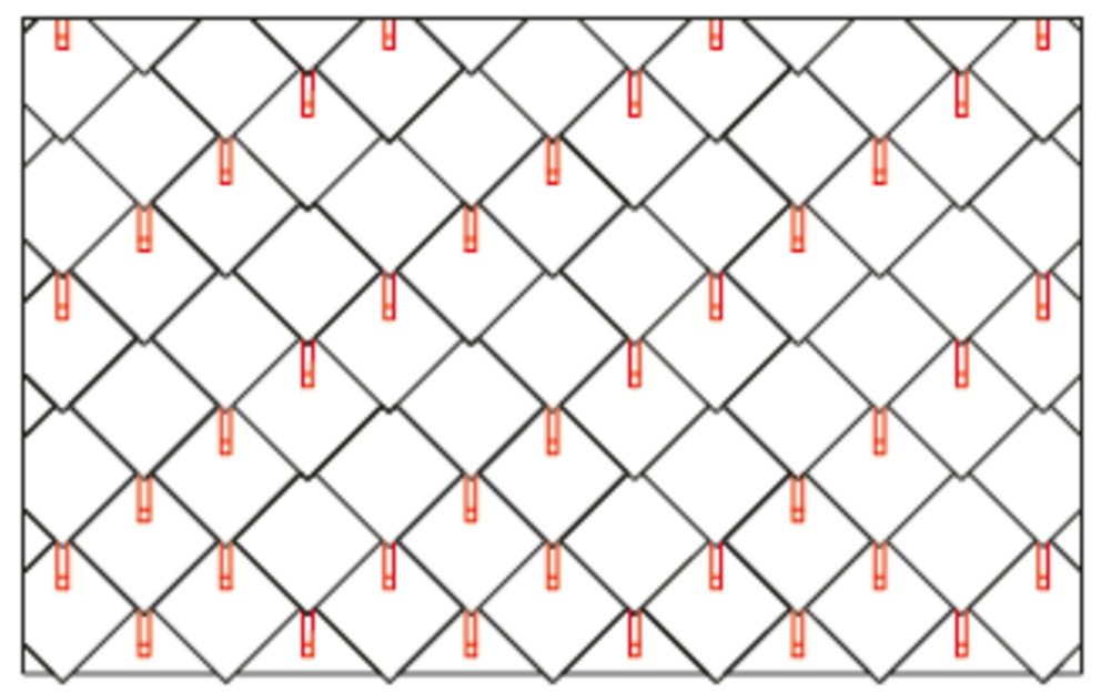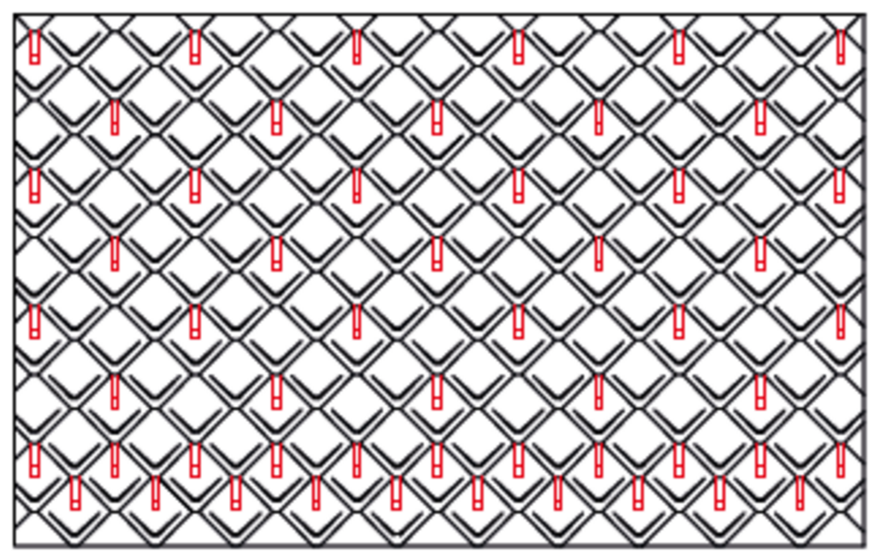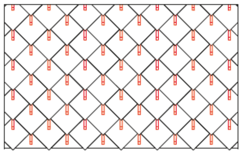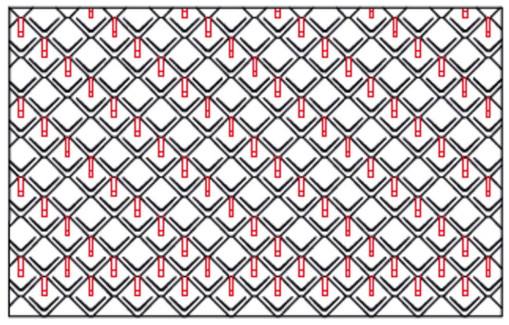 Sulle scaglie 29 × 29 vengono montati 3, 6 o 12 nasi fermaneve per m² (vedi tabella qui di seguito: Schema di posa DR1, DR2 e DR3; DR = scaglia). Sulle prime due file i nasi fermaneve devono essere montati su tutta la lunghezza.