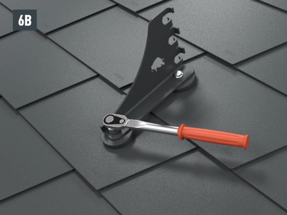 I nasi fermaneve vengono spinti verso l'alto nella tacca centrale della tegola e fissati con min. 2 chiodi zigrinati. L'uso di nasi fermaneve non influisce sul numero di graffette di fissaggio da utilizzare sulle tegole.