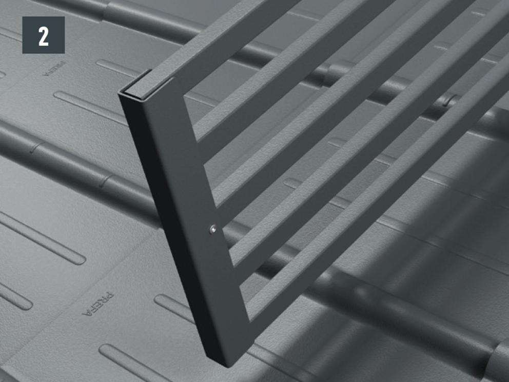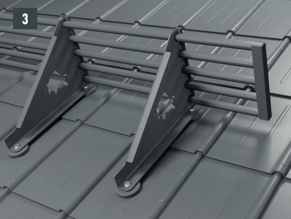 Il montaggio del sistema fermaneve a triplo tubo XL è possibile solo su una superficie solida, piana e uniforme. |