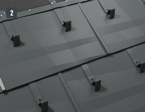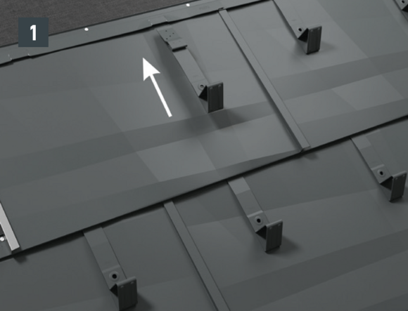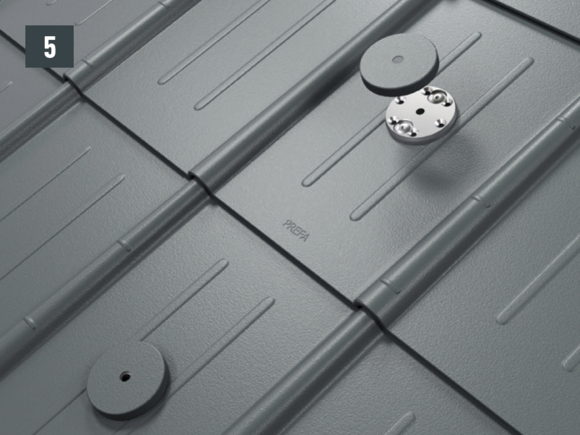Con tutti i sistemi per copertura PREFA può essere necessario montare una sottopiastra (ad es. se un'aggraffatura o un'onda si trovano nella zona del puntone). Non fissare i piedini sull'aggraffatura o sull'onda di un elemento di copertura PREFA.